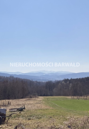 Widokowo położona działka (pasmo Beskidów z Babią Górą) zabudowana drewnianym budynkiem gospodarczym (nadany nr porządkowy)